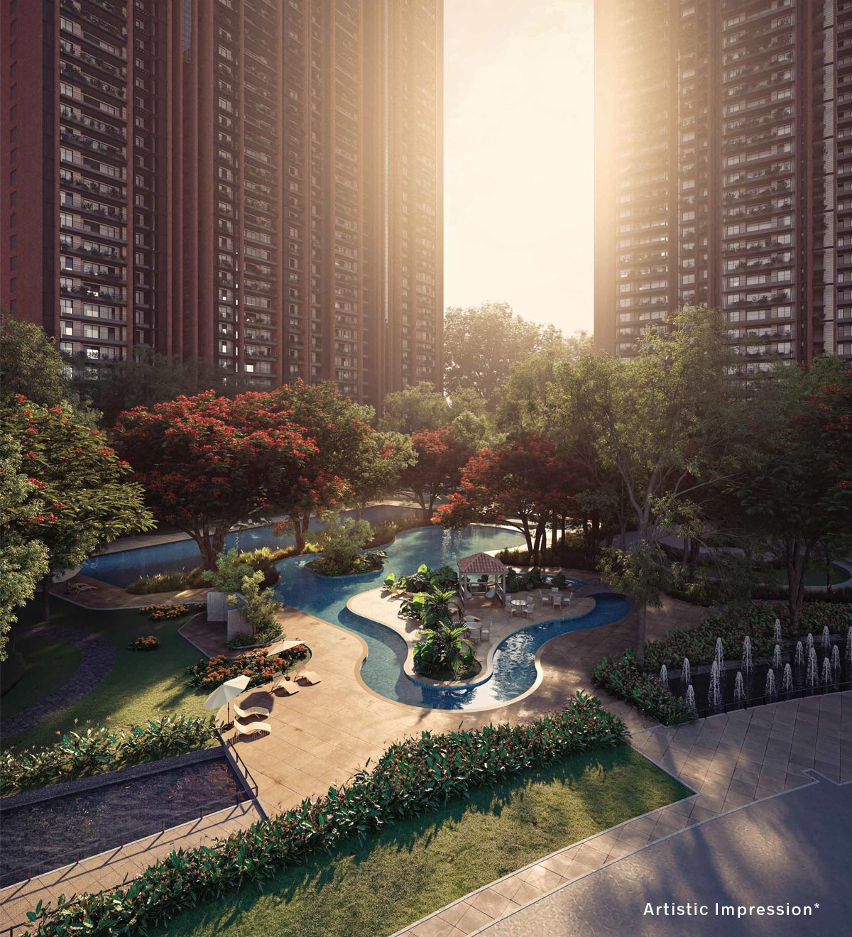This project is a "Ultra-Low Density" development. It covers 12 acres but only has 4 towers (G+40). With more than 85% of the land set aside for open green spaces, it has one of the highest ratios of open space to residents in Gurgaon.