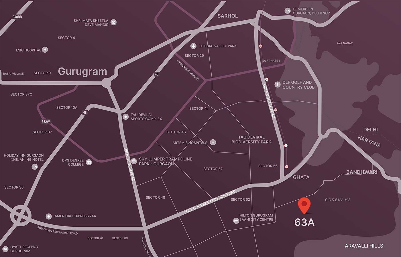Sector 63A is a fast-growing area that is surrounded by established IT SEZs and corporate hubs. The permanent greenery and low-density planning make it a popular place for HNI rentals and long-term capital growth. It is the last residential area before the Aravallis.